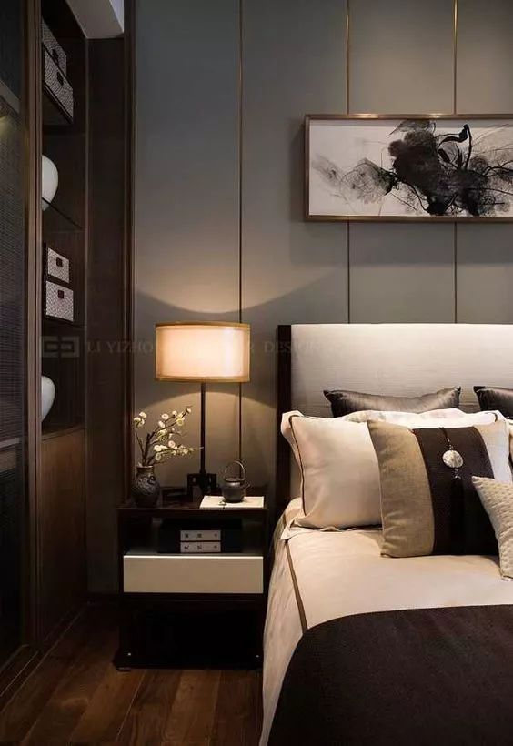 这样的直线条被运用在卧室中,一方面反映了现代人对简单生活的居住追求。另一方面,迎合了中式风格家具追求内敛、质朴的设计风格,使得新中式风格显得更加实用,更具现代感。