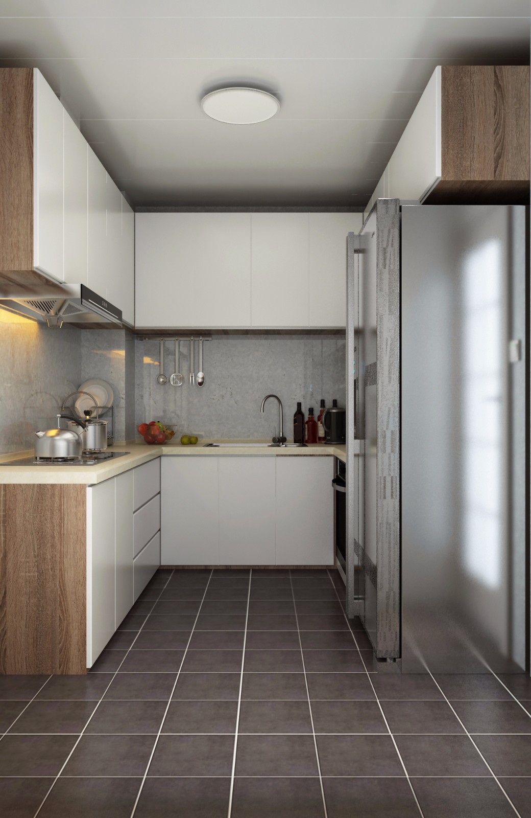 白色与木色的搭配使厨房看起来更加简洁、大气,也彰显了装饰艺术风格的特点。